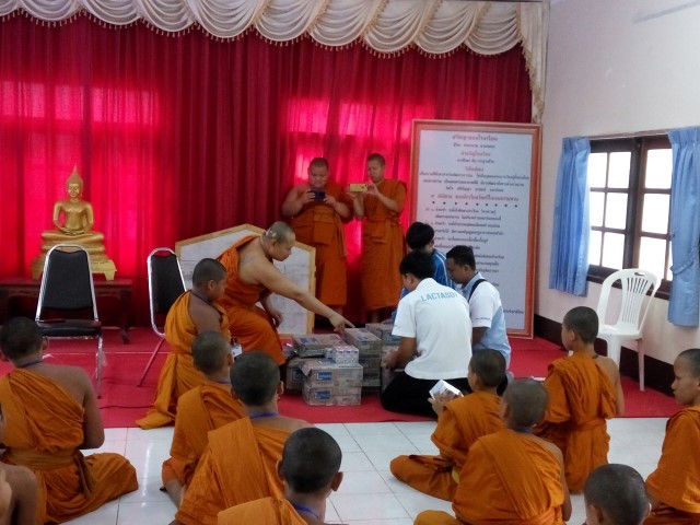 บริษัท แลคตาซอย จำกัด (สาขาบึงกาฬ) ถวายนมแลคตาซอยแก่สามเณรโรงเรียนวัดศรีโสภณธรรมทาน
