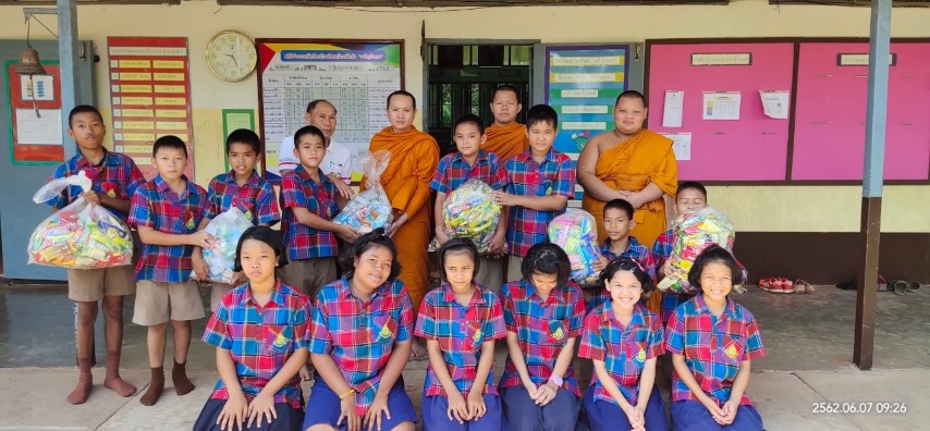 "โครงการพี่ให้น้อง" ครูและนักเรียนโรงเรียนวัดศรีโสภณธรรมทาน ได้ออกมอบขนมให้กับน้อง ๆ นักเรียนตามโร