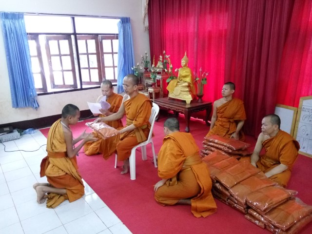 พระมหาชัยยะ ฐานวฑฺฒโน ผู้อำนวยการโรงเรียน ฯ มอบผ้าไตรจีวรแก่นักเรียน ประจำปีการศึกษา 2561