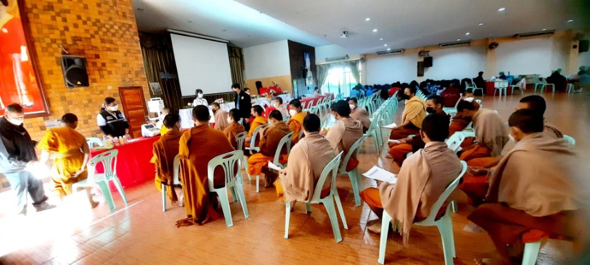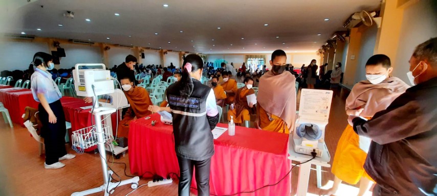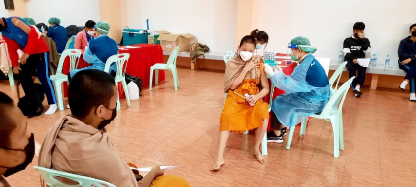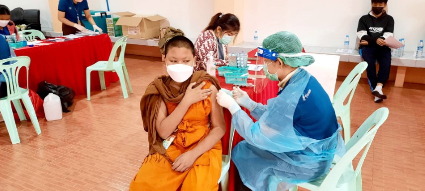 สามเณรฉัดวัคซีนป้องกันเชื้อไวรัสโคโรนา ๒๐๑๙ (COVID-19) ณ โรงเรียนบึงกาฬ อำเภอเมือง จังหวัดบึงกาฬ