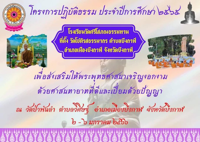 โครงการปฏิบัติธรรม ประจำปีการศึกษา ๒๕๖๕ ณ วัดป่าพันลำ ตำบลวิศิษฐ์ อำเภอเมืองบึงกาฬ จังหวัดบึง